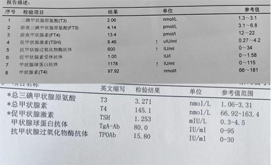 我已经完全康复了,甲亢和结节彻底除根了,就连月经量也正常了,再也不用因为眼睛不闭合难受的睡不着觉了,也不用提心吊胆结节恶变炸弹了,我觉得我一定要把我的这个经验分享给大家,一方面是感谢这么好的办法,能帮助我摆脱痛苦,再一方面我能感同身受甲亢结节带来的痛苦,希望更多病友也能够早日摆脱。
