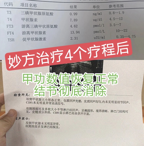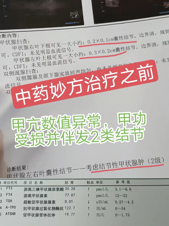 洋洋:我也是甲亢伴发甲状腺结节,四年了,我之前喝过西药、吃过保健品,都没啥用,在主任这调理了三个月就好了,而且再也没复发过!